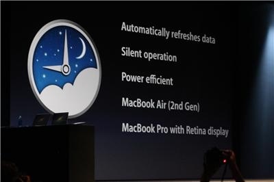 Power Nap (great name, no?) is a new feature that updates your streams while the MAC sleeps. Mountain Lion debuts in July for $19.99.