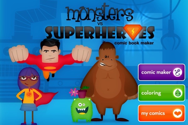 Well this latest Comic Book App – Monsters And Superheroes – from the award-winning Duck Duck Moose Design should definitely do the trick.