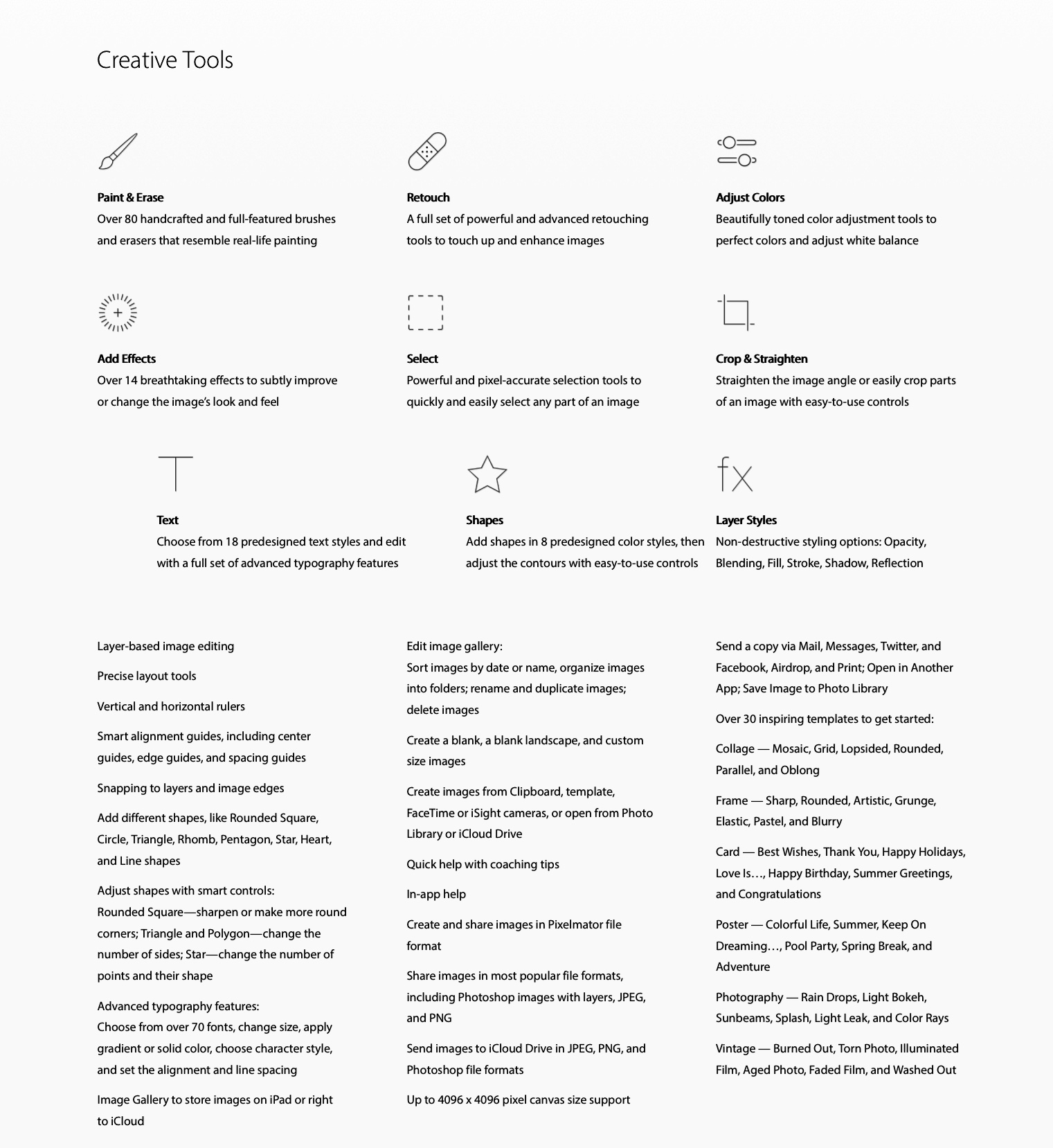 Pixelmator will set you back $4.99, which, for me, says it all. It is one of the more expensive Apps out there but is well worth the investment. I was so impressed with the creators’ presentation of this App at the October Apple Event. It pressed every one of my creative buttons and I know it will do the same for you.