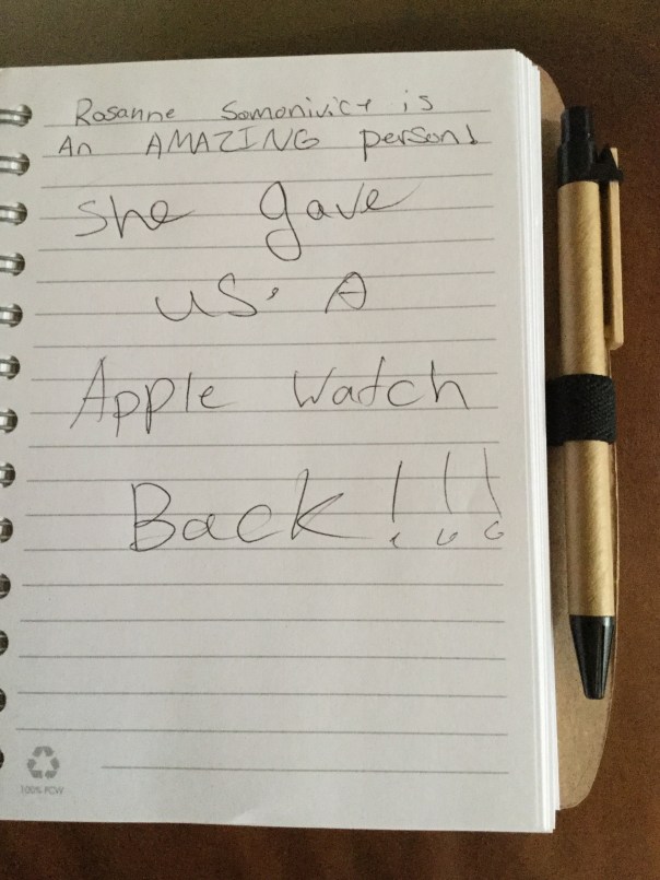 Extra Bonus – My 10-year-old granddaughter was pretty proud of her grandmother. She christened my Apple Journal with this note. A couple of grammatical/spelling errors but who cares, right? It’s the thought that counts.