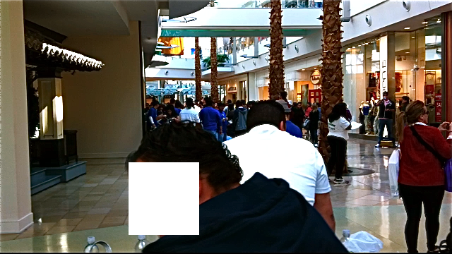 Finally, the bewitching hour approached – 5:00 P.M. – and the doors opened to much fanfare. There were, perhaps 80-100 people in front of us -a good 60 -90 minute wait we figured until we were at the head of the line. But, thankfully, we were below the Food Court and the wirelessly endowed Starbucks, so all was good.